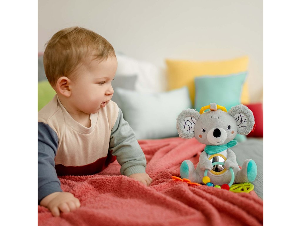 Farebné uchopovacie prvky podporujú zmysel pre zrak, hmat, uchopenie a sluch, zatiaľ čo mäkké hryzátko v tvare hviezdy pomáha s prerezávaním zúbkov. Bábätká budú trénovať svoje sebavedomie pomocou bezpečného zrkadla a smiešne zvuky, ktoré vydáva hrkálku ich budú fascinovať a zabavia ich na dlhú dobu.