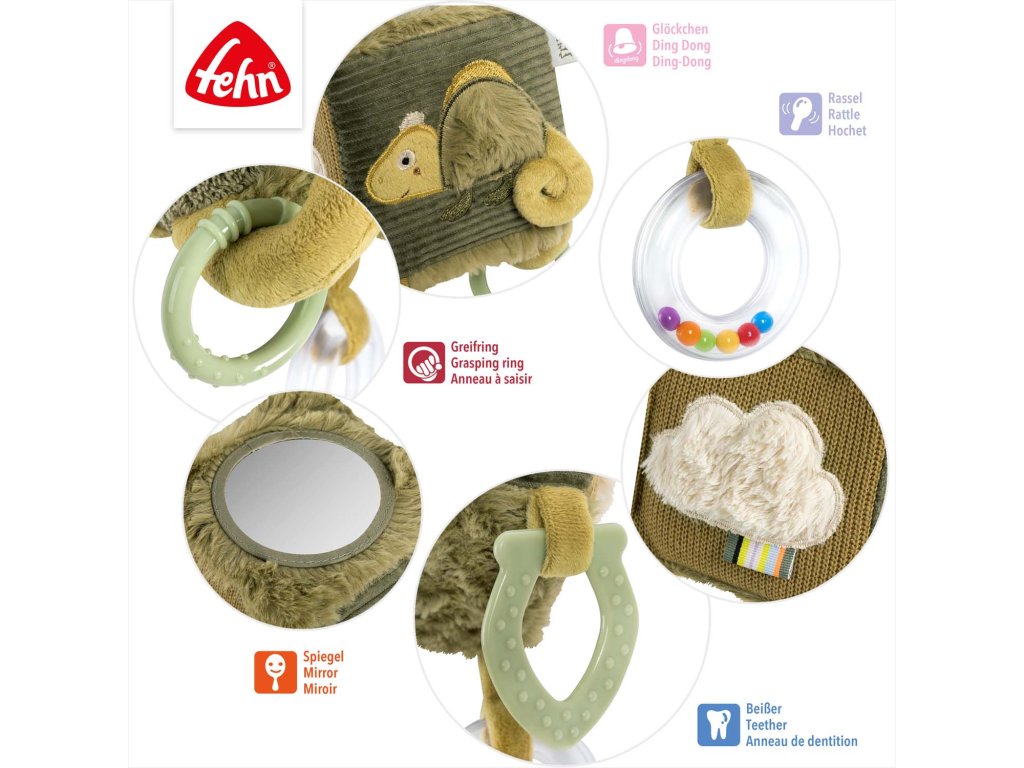 Vďaka praktickému C-krúžku možno túto všestrannú interaktívnu kocku s chameleónom jednoducho pripevniť kamkoľvek a rýchlo sa tak stane verným spoločníkom vášho bábätka.
