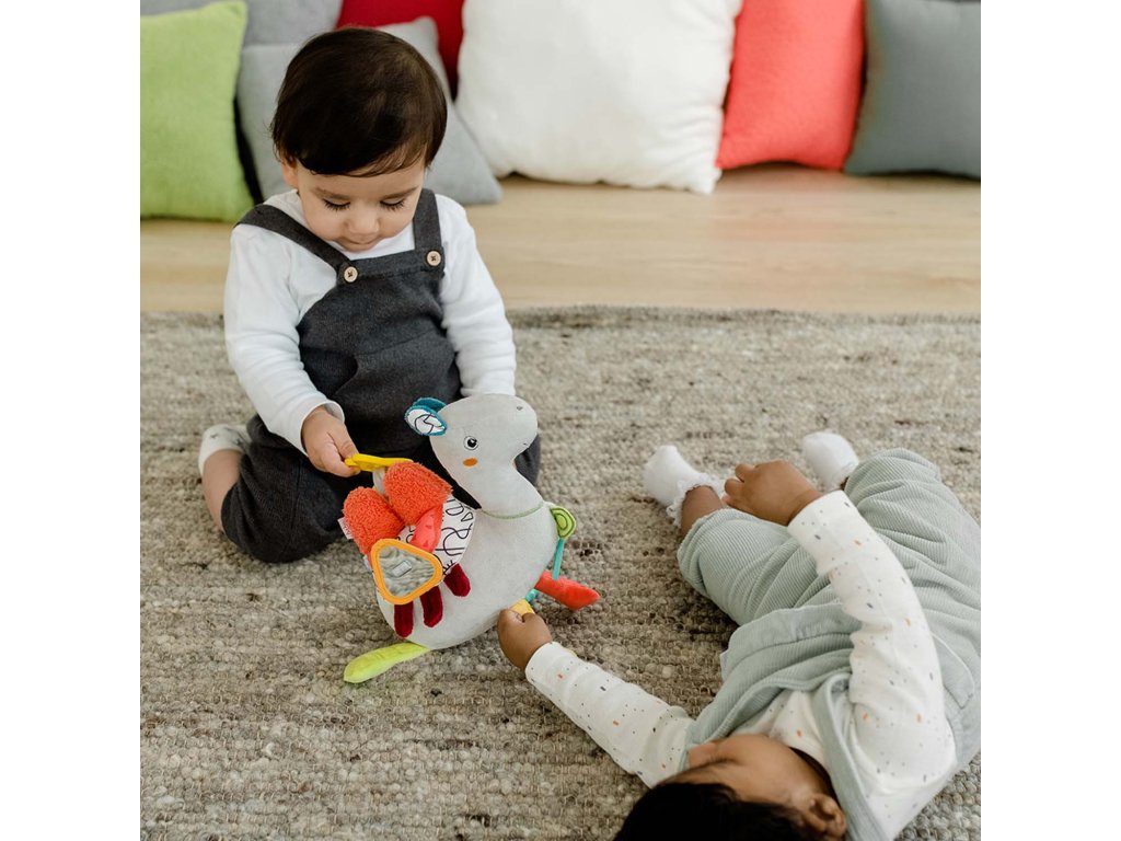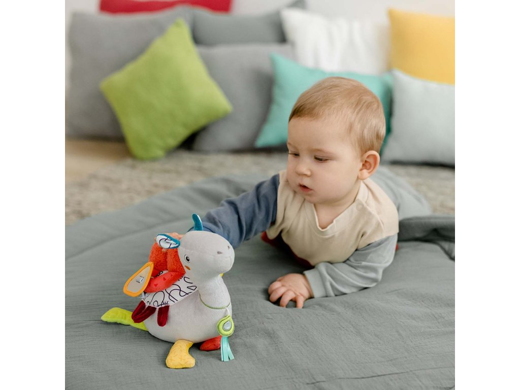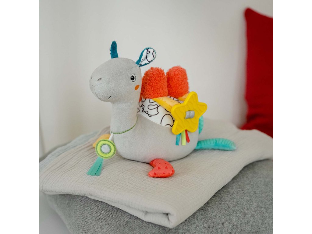 Hracej ťavy si vaše dieťatko okamžite zamiluje či už ako maznajúceho najlepšieho kamaráta alebo vďaka upokojujúcej melódii " Brahms Lullaby". Po natiahnutí hudobnej mechaniky zaznie obľúbená uspávanka – melódia s príjemnou hlasitosťou a tónmi uspáva vaše dieťatko k spánku. Bezpečné zrkadlo pomáha trénovať sebavedomie.
