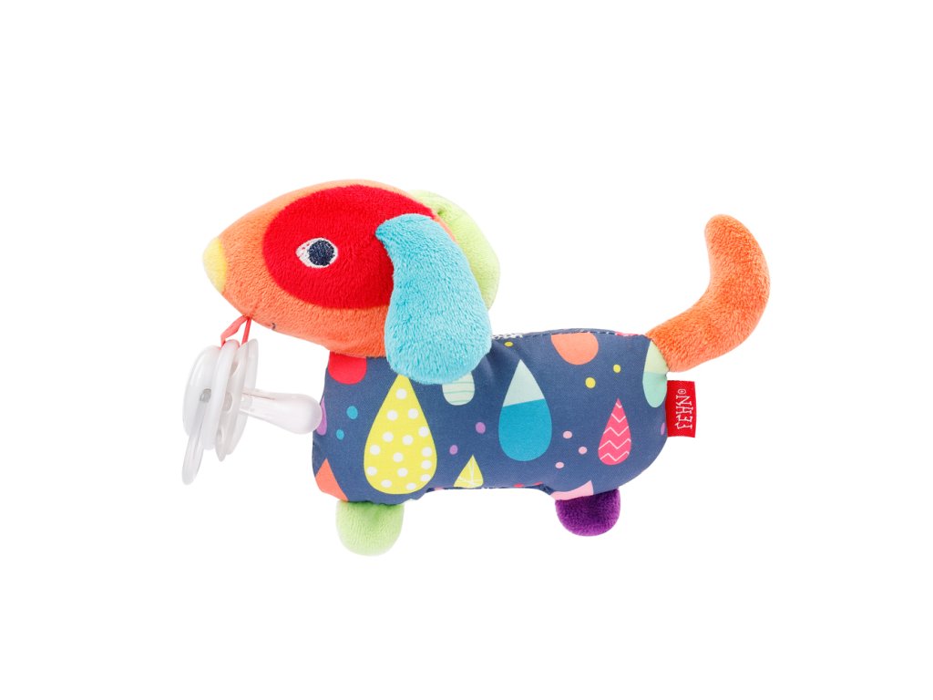 Roztomilý cumlík z kolekcie COLOR Friends je to pravé pre malých prieskumníkov sveta. Všetky praktické cumlíky s rukoväťou alebo bez nej možno pripevniť na silikónový krúžok. Dudlíková hračka je teda nielen krásna svojimi výraznými farbami a vzormi, ale aj super praktická. Skryté hrkálky v plyšovom psíkovi podporujú sluch dieťaťa, jeho uchopenie a dotyk, rovnako ako jemnú motoriku. Farebný uchopovacie pes je ideálny ako darček k narodeniu, krstu alebo narodeninám.