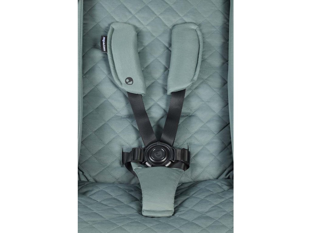 - textilné časti: PET tkaniny, sedadlo/strieška/polstrovanie: 100% polyester