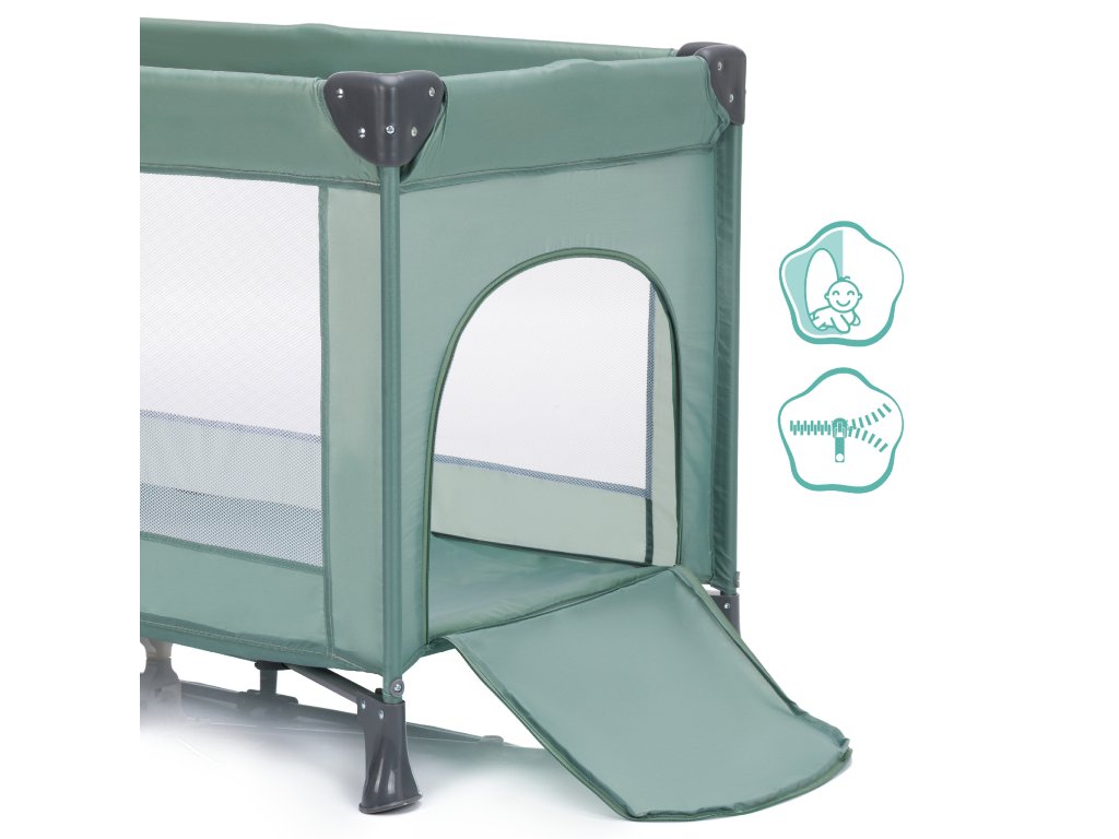 Boční vstup na zip je obzvlášť praktický. Jakmile je Vaše dítě větší, může si samo vlézt dovnitř nebo vylézt ven. Postýlka se tak stává oblíbeným místem nejen pro spánek, ale i pro hraní a odpočinek. Prodyšné síťované bočnice zajišťují příjemnou cirkulaci vzduchu a umožňují Vám mít dítě stále na očích.