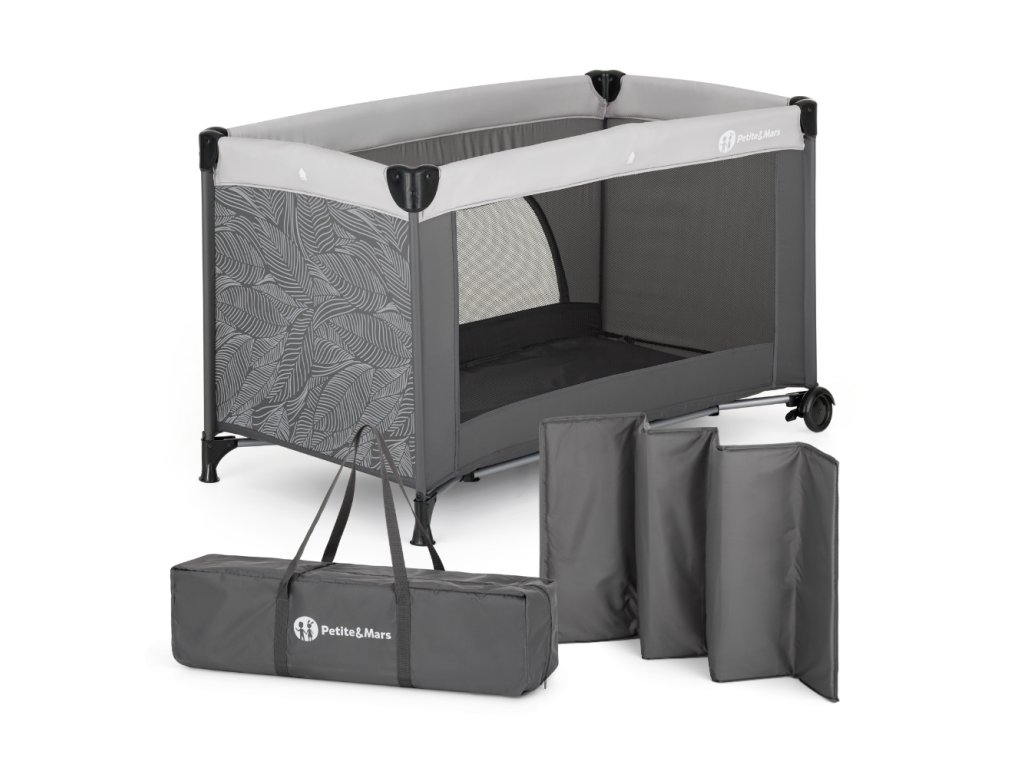 PETITE&MARS Postieľka cestovná Nyja Urban Jungle Charcoal