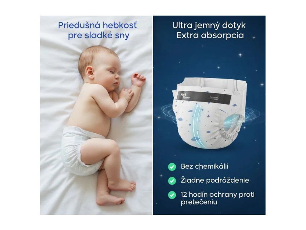 - Konštrukcia proti pretekaniu: pokročilá absorpčná technológia zaručuje spoľahlivú ochranu, takže vaše dieťa zostáva suché a v pohodlí počas celého dňa aj noci.