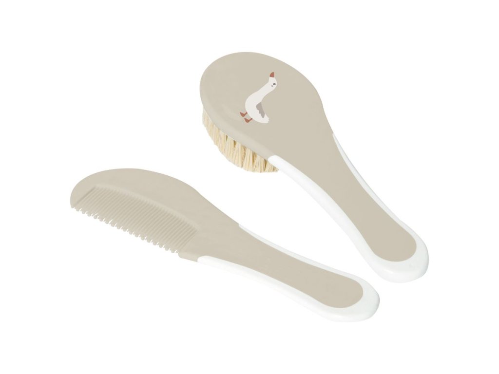 Praktická sada pre starostlivosť o vlásky novorodencov a bábätiek. Na rozdiel od iných kief vyrobených z tvrdého silónu, kefa od bébé-jou má mäkký prírodný vlas nedráždiaci jemnú pokožku detskej hlavičky. Hrebeň je ergonomicky tvarovaný a vďaka zaguľateným špičkám zubov nemôže poškriabať pri česaní. Ľahko sa udržuje v čistote umytím v teplej vode s trochou mydla.