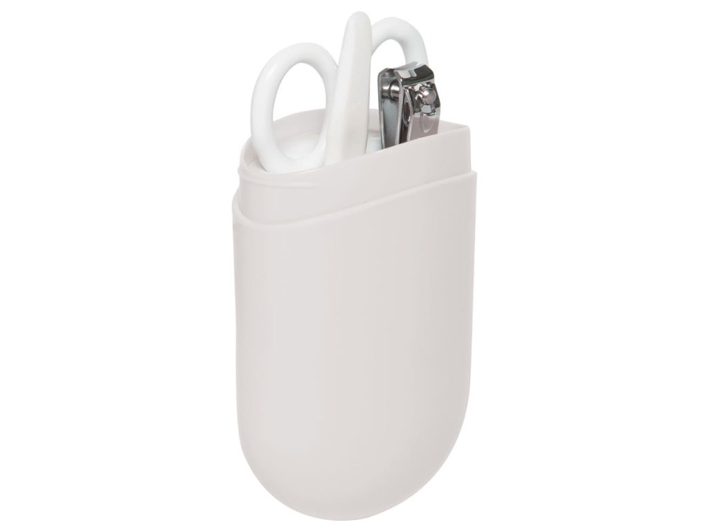 Manikúra obsahuje nožnice so zaguľatenými koncami, pilníček na nechty a tiež klieštiky na nechty. Všetko je vyrobené z nehrdzavejúcej ušľachtilej ocele. Krabička chráni pred prachom a pomáha udržiavať manikúru v čistote. Ale aj napriek tomu pred každým použitím jednotlivé nástroje starostlivo očistite a u novorodencov aj dezinfikujte roztokom liehu.