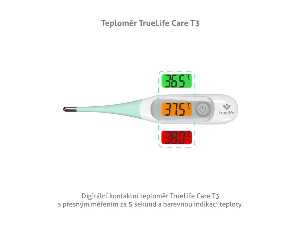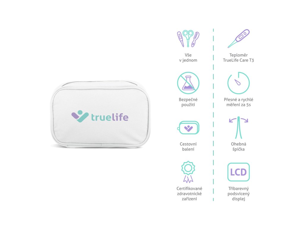 Privítanie nového bábätka je radostný zážitok, ale môže byť aj ohromujúci, najmä kvôli nekonečnému množstvu vecí, ktoré je potrebné vybaviť a nakúpiť. Aby sme vám pomohli zorientovať sa, pripravili sme pre vás niekoľko základných vecí pre starostlivosť o vaše dieťatko, ktoré sú na jednom mieste. Úplne nová súprava TrueLife BabyKit obsahuje všetko, čo potrebujete, od starostlivosti o nechty a vlásky až po náš teplomer TrueLife Care T3 a jemnú odsávačku hlienov - všetko vyrobené z netoxických materiálov a s ohľadom na bezpečnosť. Táto fantastická súprava je ideálna na doma aj na cesty, je vyrobená tak, aby vydržala, a je dokonalým darčekom pre tých, ktorí sa vydávajú na krásnu cestu rodičovstva. Rýchly a presný teplomer Digitálny teplomer TrueLife Care T3 je kľúčovou súčasťou našej súpravy, ktorá zabezpečí pohodu vášho dieťaťa. Toto vyspelé zariadenie zachytí presné údaje o teplote za pôsobivých 5 sekúnd, či už z podpazušia, úst alebo konečníka, alebo dokonca pri meraní vody vo vani - stačí si vybrať vhodný režim. Podsvietený displej poskytuje okamžitú vizuálnu spätnú väzbu tým, že mení farbu podľa nameranej teploty. Zelený displej znamená normálnu teplotu, oranžový upozorňuje na zvýšenú teplotu a červený varuje pred horúčkou. Tento teplomer je vyrobený bez obsahu ortuti alebo iných škodlivých látok a má pružnú, jemnú špičku, ktorá je zárukou bezpečnosti a pohodlia vášho dieťaťa. Bezpečný a praktický Každá položka v súprave TrueLife BabyKit je premyslene vyrobená z netoxických, ľahko umývateľných materiálov, ktoré poskytujú maximálnu ochranu pre vaše dieťatko. Jednoduchá údržba navyše zaisťuje vždy čisté a hygienické prostredie pre vaše dieťa, a to s dodatočnou bezpečnosťou nožničiek so zaoblenou špičkou. Súprava TrueLife BabyKit sa ukazuje ako ideálne riešenie na použitie doma aj na cestách - všetky potrebné veci sú šikovne usporiadané v praktickom puzdre a vždy pripravené na akciu. Táto súprava je síce ideálna pre novorodencov a malé deti, ale aj počas batoľacieho veku prináša stále hodnoty. - Bezpečnosť na prvom mieste: či už ide o novorodenca alebo batoľa, zaručujeme bezpečnosť našej súpravy, ktorá obsahuje nožnice so zaoblenými hrotmi, jemnú kefku s jemnými štetinkami a bezpečné materiály. - Klinicky certifikované: teplomer TrueLife Care T3, ktorý je súčasťou súpravy, je certifikovaná zdravotnícka pomôcka, ktorá spĺňa všetky potrebné požiadavky na bezpečné a presné merania. - Ohybná špička: ohybný hrot teplomera, ktorý bol navrhnutý s maximálnou starostlivosťou, zaisťuje pohodlie počas merania, takže je vhodný aj pre najmenšie detičky. Technické parametry: - typ: digitálny teplomer (prediktívny) - rýchlosť merania: 5 - 10 sekúnd - rozsah merania: 32,0 °C – 43,9 °C (89,6 °F – 111,02 °F) - presnosť medzi 35,5 °C – 42 °C (95,9 °F – 107,6 °F): ± 0,1 °C (± 0,2 °F) - presnosť v iných rozsahoch: ± 0,2 °C (± 0,4 °F) - režimy : Orálne / rektálne / do podpazušia / do kúpeľa - zobrazenie: 3-farebné podsvietenie s indikáciou teploty - pamäť: posledných 10 nameraných hodnôt - ďalšie funkcie: flexibilný hrot, zvukové signály, alarm horúčky, prepínanie jednotiek (°C/°F), automatické vypnutie, indikácia slabej batérie - batérie: 1 × CR2032 - výdrž batérie: približne 1 000 meraní (1 rok s 3 meraniami denne) - stupeň krytia IP: IP27 - prevádzková teplota: 5 °C – 40 °C - skladovacia teplota: -10 °C – 50 °C Obsah balenia: - 1× Teplomer TrueLife Care T3 - 1× Odsávačka hlienov - 1× Nožničky na nechty so zaoblenými hranami - 1× Nožničky na nechty - 1× Hrebeň - 1× Kefa na vlasy s jemnými štetinami - 1× Zubná kefka na prsty - 3× Pilník na nechty - 1× Cestovné puzdro - 1× Návod na použitie a bezpečnostné pokyny - 1× Návod na použitie teplomeru TrueLife Care T3 - 1× Bezpečnostné pokyny pre teplomer TrueLife Care T3