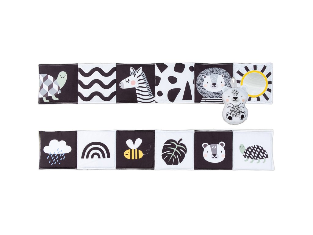 Obojstranná textilná knižka pre najmenších je určená do kočíka, postieľky aj na hraciu deku.