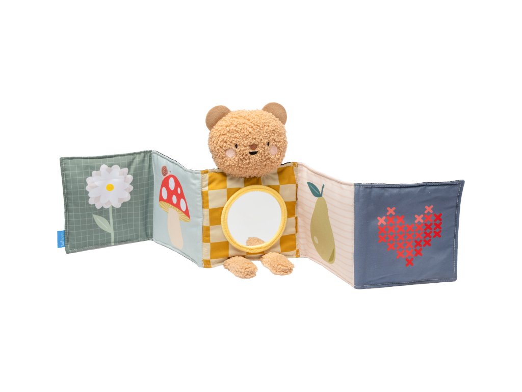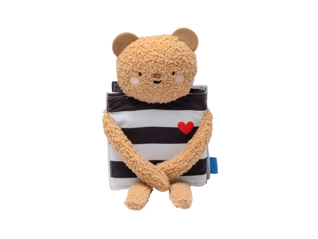 Plyšový medvídek s textilní knížkou miminko zabaví a zároveň pomáhá rozvíjet jeho jednotlivé smysly. Oboustranná knížka nabízí stranu pro novorozence s vysoce kontrastními černobílými ilustracemi a stranu s výraznými barevnými ilustracemi a aktivitami ke zkoumání pro starší miminko. Hračka podněcuje zvídavost, podporuje vývoj dítěte a zároveň nabízí příjemnou porci mazlení.