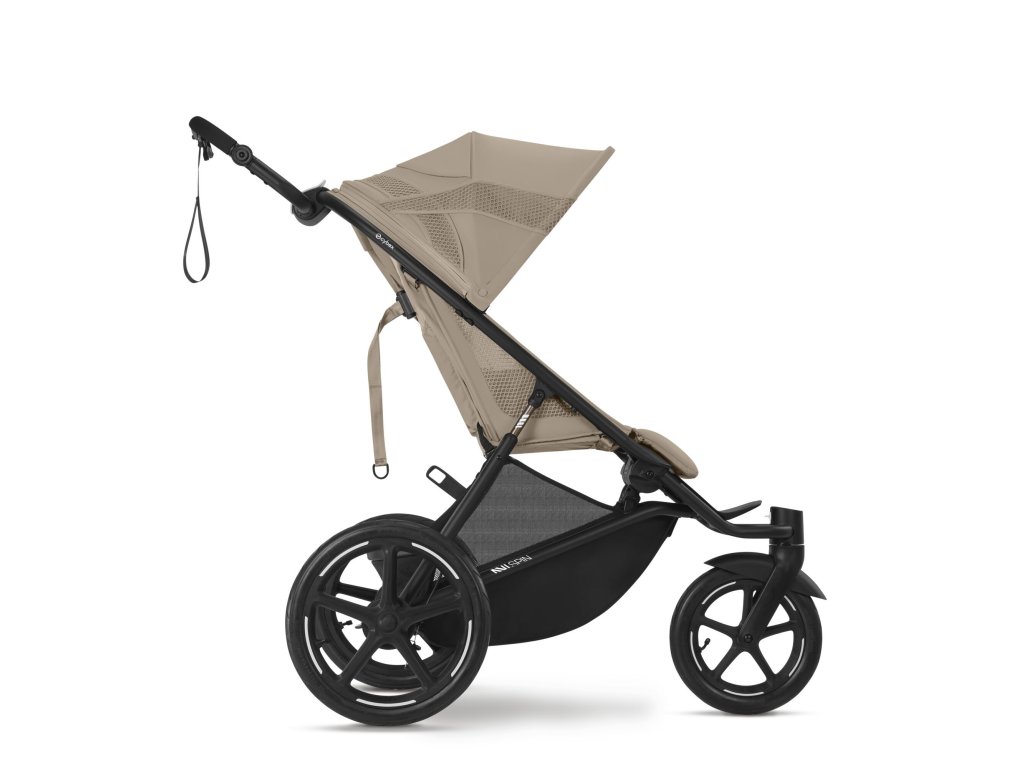 Pneumatiky hustené vzduchom poskytujú vynikajúci odpružený komfort v akomkoľvek teréne. Predné otočné koliesko zlepšuje manévrovateľnosť, ale v prípade potreby ho možno uzamknúť, napríklad pri behaní alebo na rovnejšej trase.
