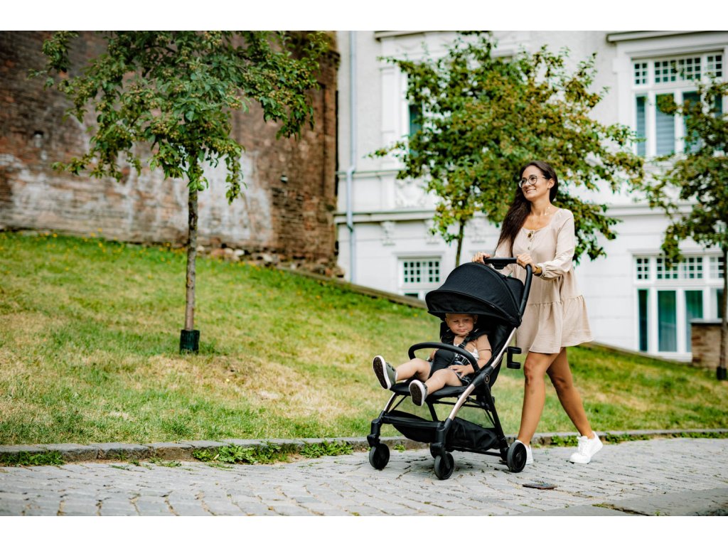 Měkké sportovní sezení je vybaveno 5bodovým bezpečnostním pásem s magnetickou sponou. Hrazdu kočárku je možné odklopit pro snadnější usazení dítěte. Prodloužitelná stříška s větracím okýnkem chrání dítě před sluncem a větrem. Součástí je také košík, který unese až 3 kg věcí, které budou na cestách potřeba.