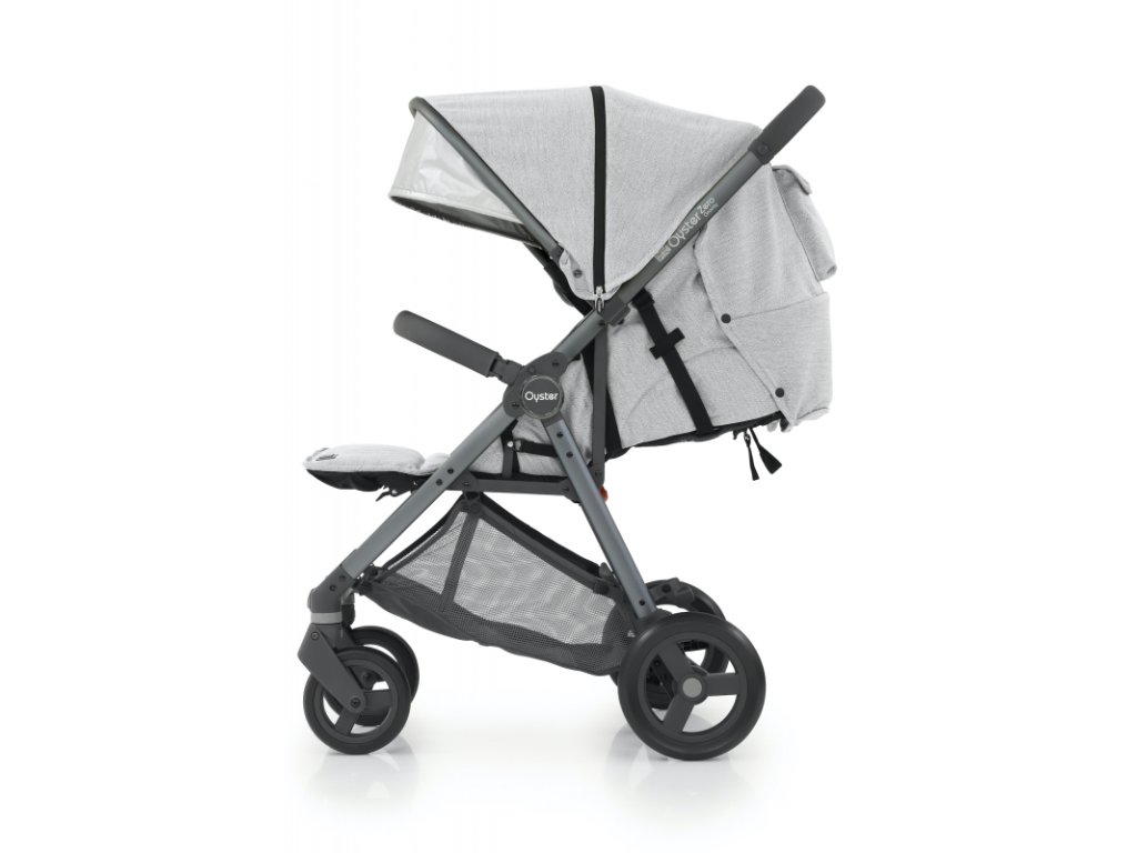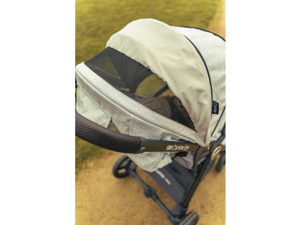 Oyster Zero Gravity ďalej zahŕňa 5-bodové bezpečnostné pásy s polstrovaním a veľkú striešku z textílie s ochranou UPF 50+, ktorú možno predĺžiť.