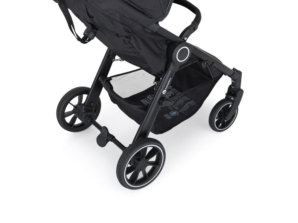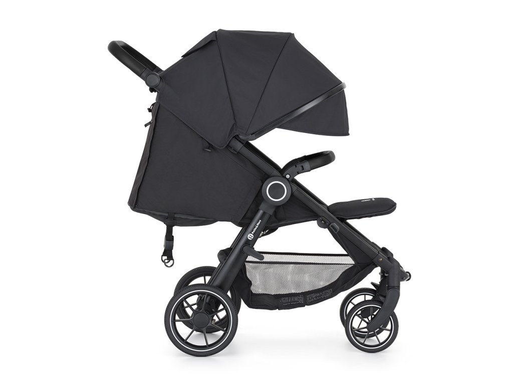 Športový kočík Street2 RWS Black je vďaka menším kolieskam ľahší, celogumené kolieska majú ale napriek tomu výborné jazdné vlastnosti. Madlo a rukoväť sú v krásnej hnedej farbe.