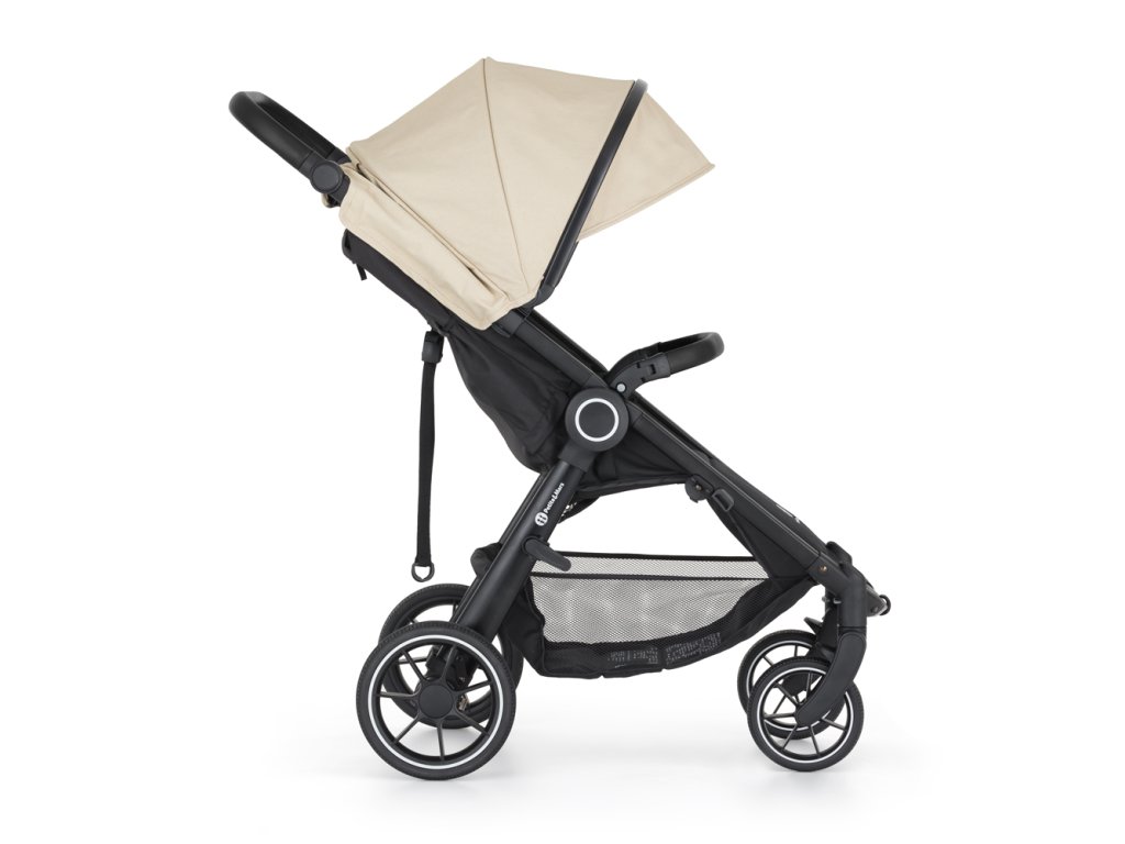 Športový kočík Street2 RWS Black je vďaka menším kolieskam ľahší, celogumené kolieska majú ale napriek tomu výborné jazdné vlastnosti. Madlo a rukoväť sú v krásnej hnedej farbe.