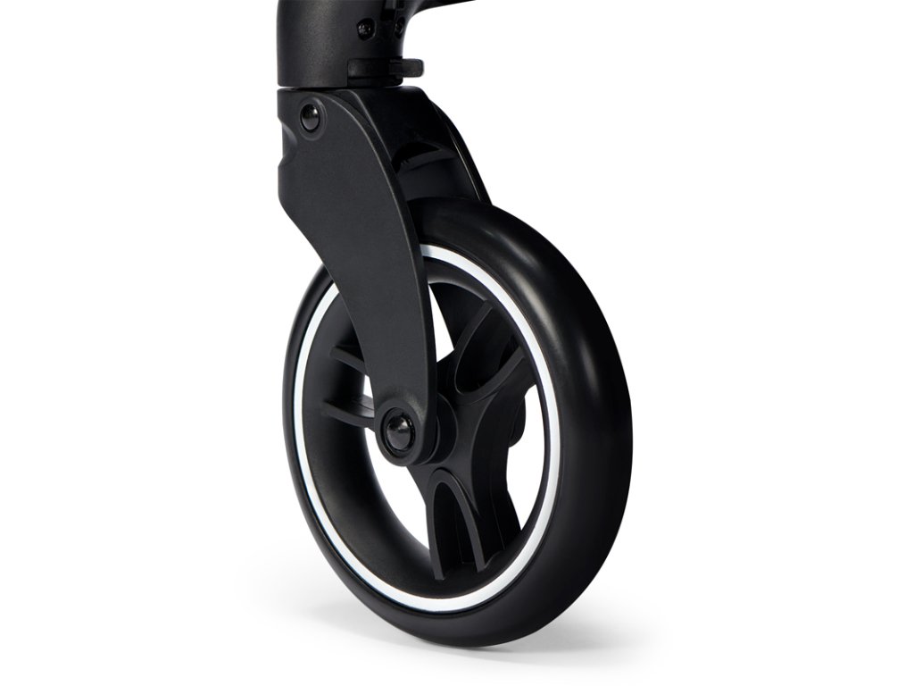 - otočné predné kolesá (o 360 stupňov) majú aretáciu pre priamu jazdu, vďaka čomu sa kočík ľahko ovláda aj v úzkych uličkách.