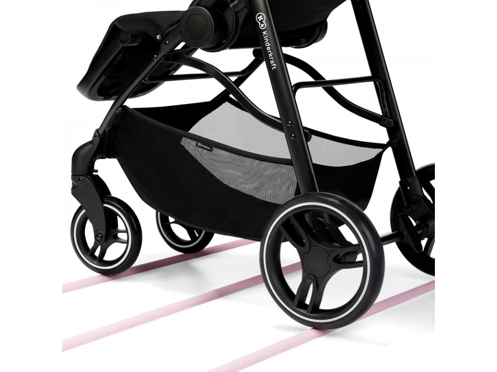 - veľké odpružené kolesá sú ľahké a otočné, čo zaručuje ľahkú a pohodlnú jazdu.
