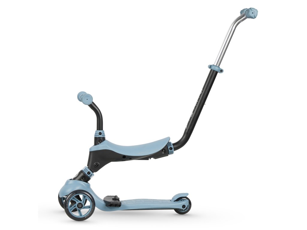 - Riadidlá a sedlo rodiča sú odnímateľné a môžu sa používať ako normálna kolobežka pre deti do 50 kg