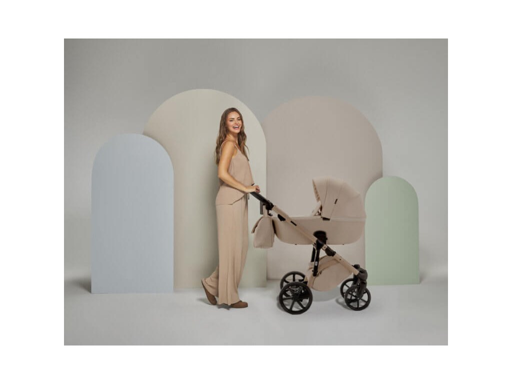 Kombinovaný kočík Adamex Nola v kolekcii Natura je cenovo dostupný model kočíka, ktorý budete zbožňovať. Kolekcia sa vyznačuje dokonale zladenými farebnými kombináciami látky, eko-kože, doplnkov a rámu kočíka