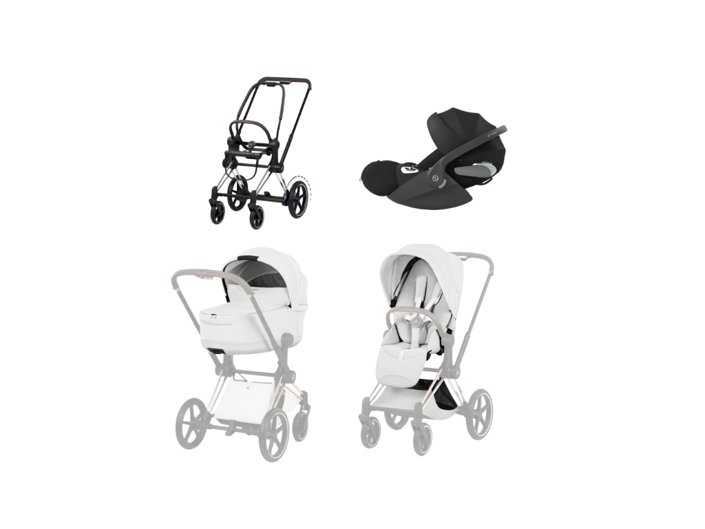 Cybex e-Priam 5 Style Kombinovaný kočík 3v1 - Off white / Chrome brown