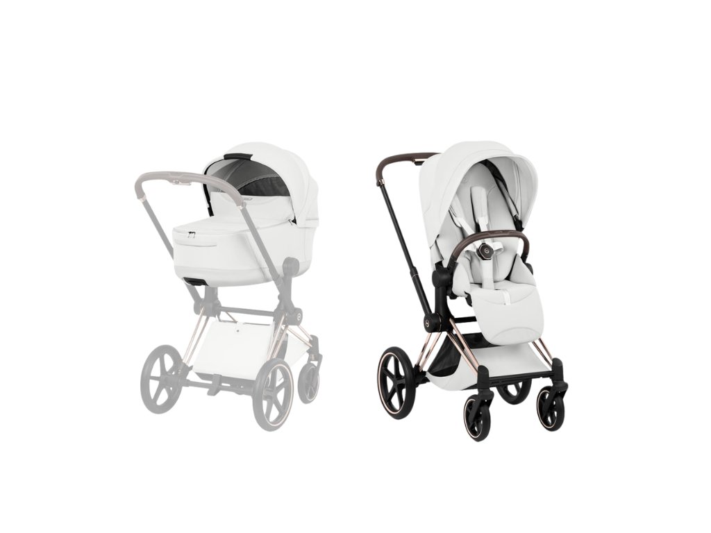 Rám je pripravený na travel system, takže môžete kočík Priam prispôsobiť meniacim sa potrebám vášho dieťaťa – od útulnej novorodeneckej vaničky Priam Fold Lux Carry Cot, cez detskú autosedačku, až po sedadlo pre batoľa otočené v smere jazdy alebo smerom k rodičovi.