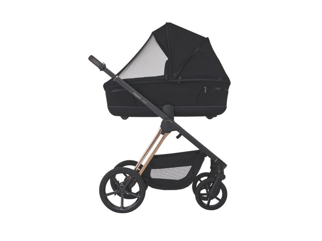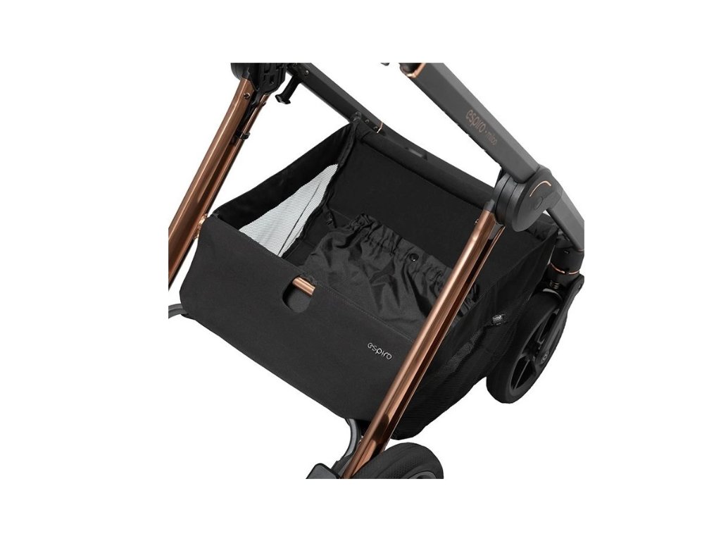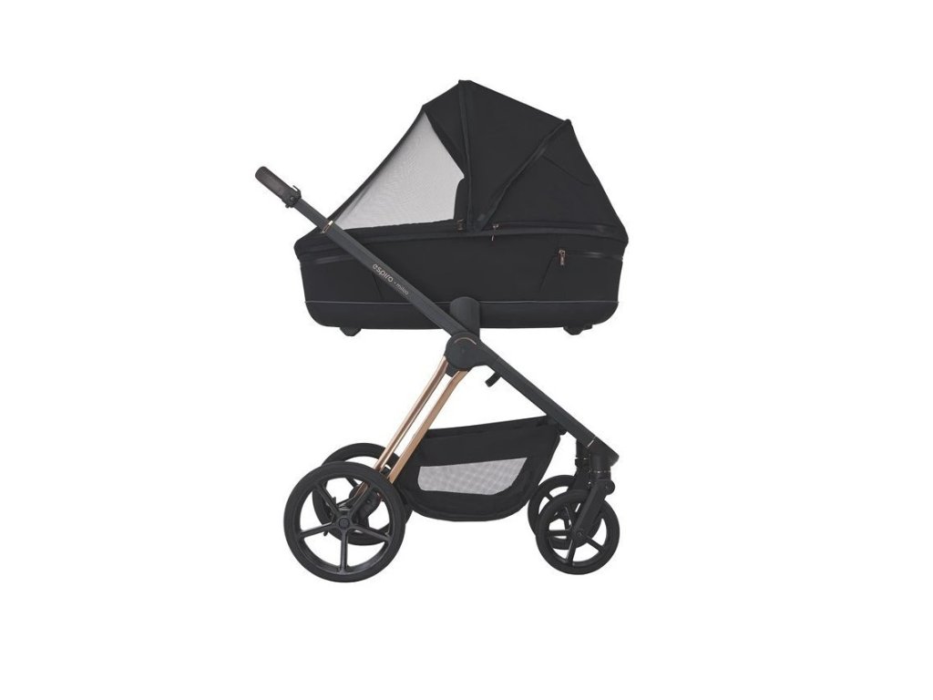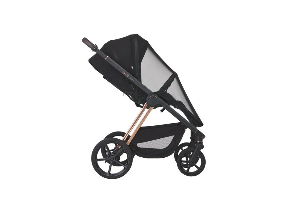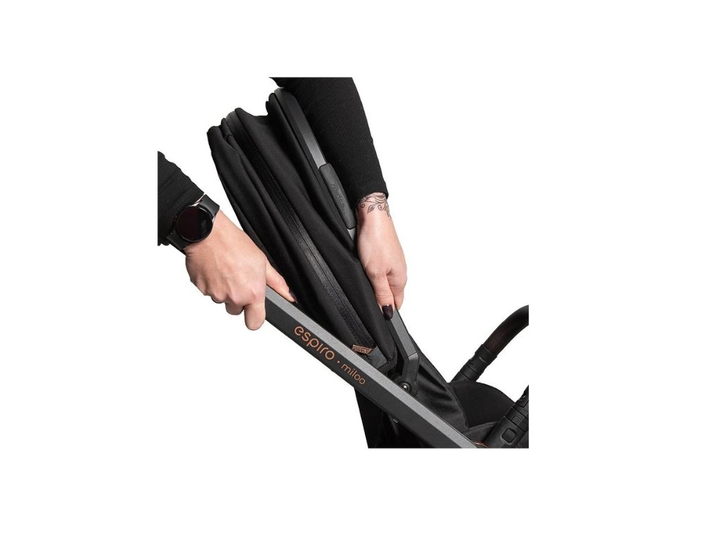 Komfortná korba: poskytuje pohodlie a optimálne podmienky pre novorodencov a mladšie dojčatá. Je vybavená dodatočným stabilizátorom vibrácií. Vďaka tomu dieťa ešte menej pociťuje otrasy spojené s jazdou po nerovných chodníkoch alebo parkových uličkách. Korba kočíka Esipro Miloo má tiež trojitý ventilačný systém. Dieťa v nej má lepší prístup k čerstvému vzduchu, čo je dôležité pre jeho pohodlie a dobrý pocit. Strieška korby oceníte nielen kvôli jej dizajnu, ale aj funkčnosti. Jej úplné rozloženie chráni dieťa pred slnkom a vetrom. Súčasťou balenia je aj moskytiera, ktorá chráni pred hmyzom.