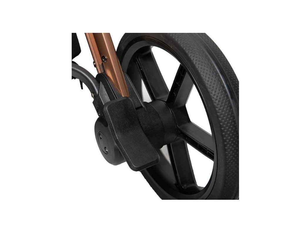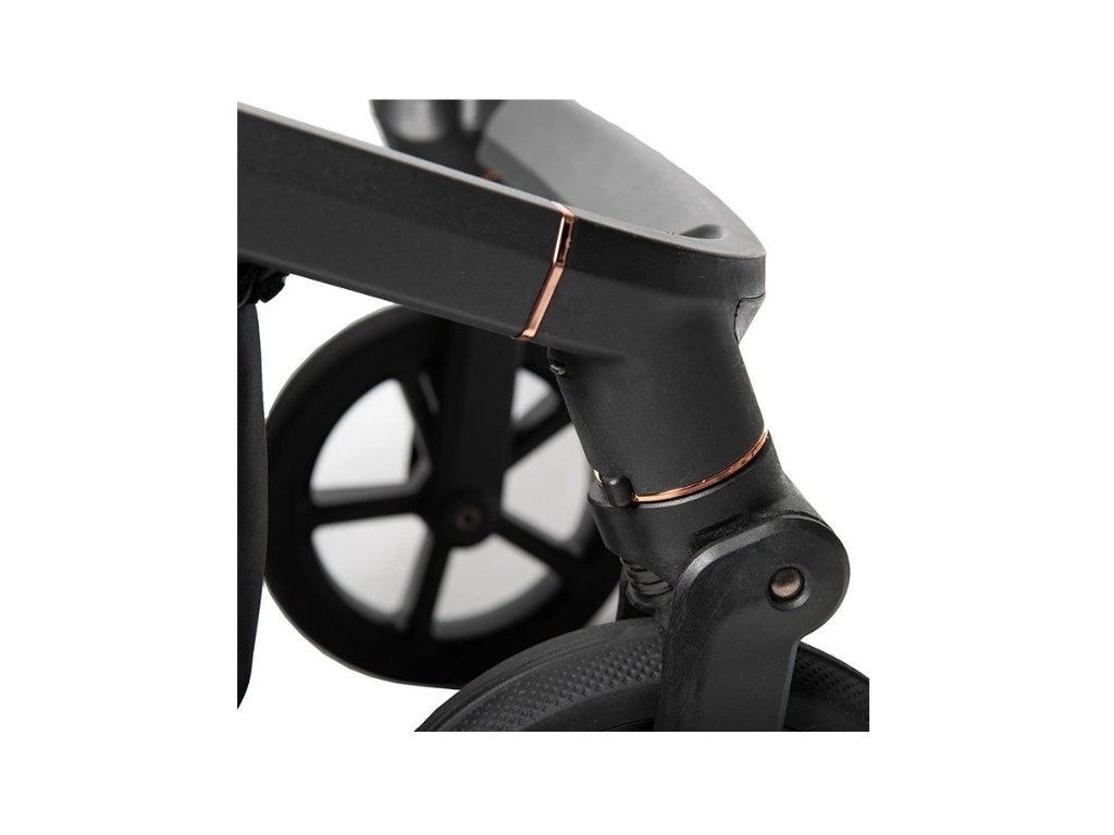 Tu na vás čaká rám na kolesách so špeciálne navrhnutým vzorkom, vďaka ktorému sa kočík ovláda ľahko, plynule a veľmi príjemne. Potěší vás tiež prítomnosť ergonomickej teleskopickej rukoväte potiahnutej mäkkou eko kožou, ktorá je nastaviteľná na výšku.