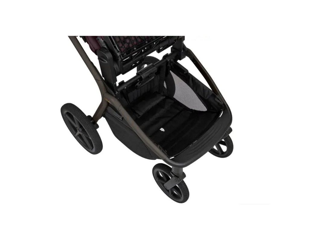 Po zložení kočík samostatne stojí. Pre ľahké prenášanie je pripravený popruh cez rameno a madlo.