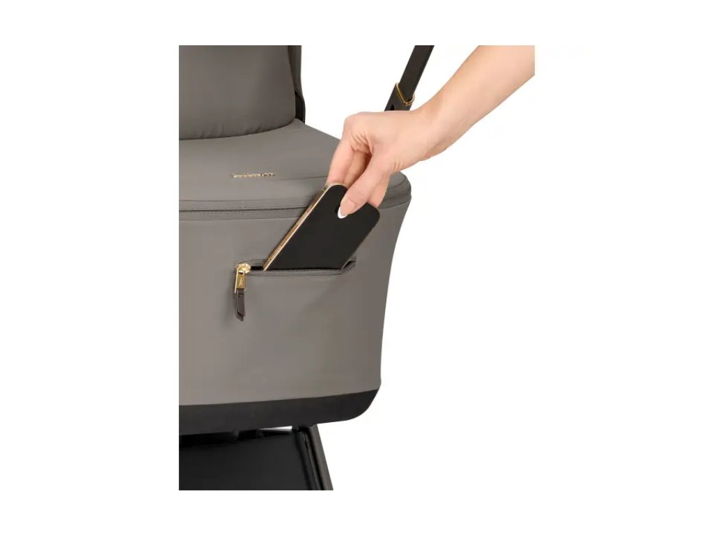 Súčasťou kočíka je luxusná prebaľovacia taška s úchytmi pre zavesenie na rukoväť kočíka.