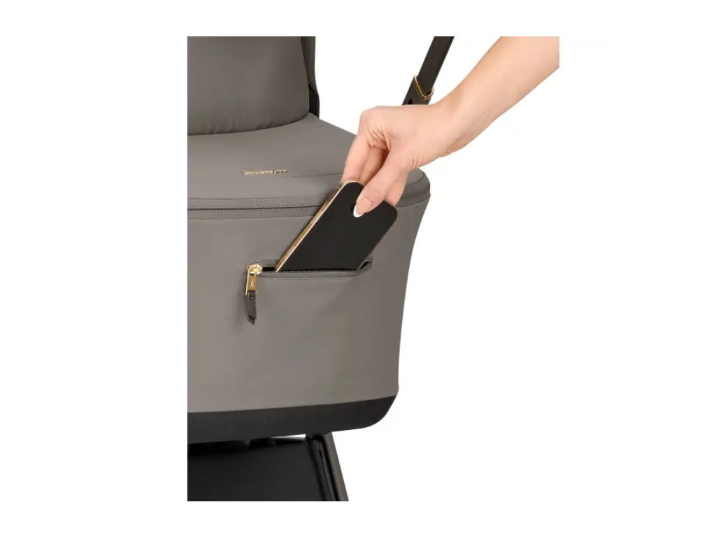 Súčasťou kočíka je luxusná prebaľovacia taška s úchytmi pre zavesenie na rukoväť kočíka.