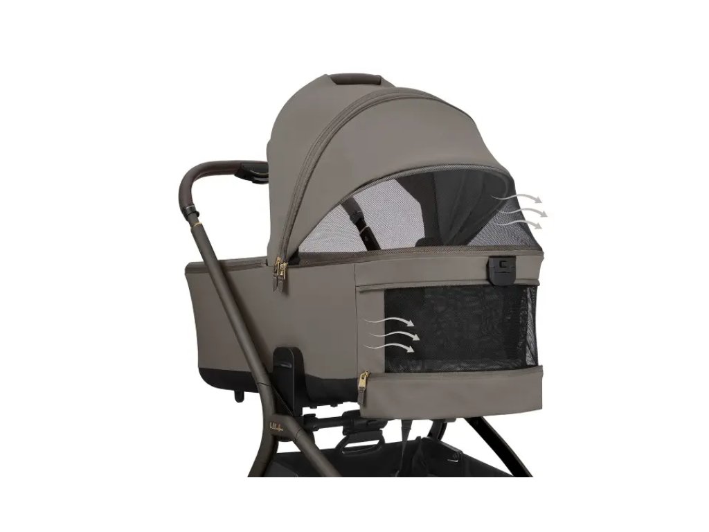 Pre pohodlie dieťaťa je súčasťou obojstranný mäkký matrac so zimnou stranou z kvalitného zamatového materiálu a letnou stranou z priedušnej sieťoviny pre lepšiu ventiláciu. Strieška má zipsové predĺženie, slnečnú clonu a dopĺňa ju extra slnečná clona pre maximálny tieň. Ventiláciu zaisťujú sieťované vetracie otvory na strieške aj v oblasti hlavy. Praktická je aj vrecko na telefón na zips.Vodeodolný textilný materiál s UPF 50+ chráni dieťa pred poveternostnými vplyvmi a slnečným žiarením.