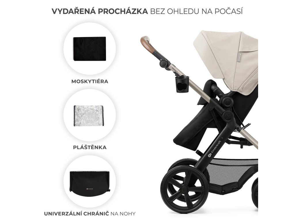 Súčasťou kočíka je praktické príslušenstvo: držiak na pohár, univerzálny kryt nôh na prenosnú tašku a kočík, sieťka proti hmyzu, fólia proti dažďu, taška pre rodičov a adaptéry na detskú autosedačku. Okrem toho táto súprava obsahuje detskú autosedačku MINK PRO i-Size.