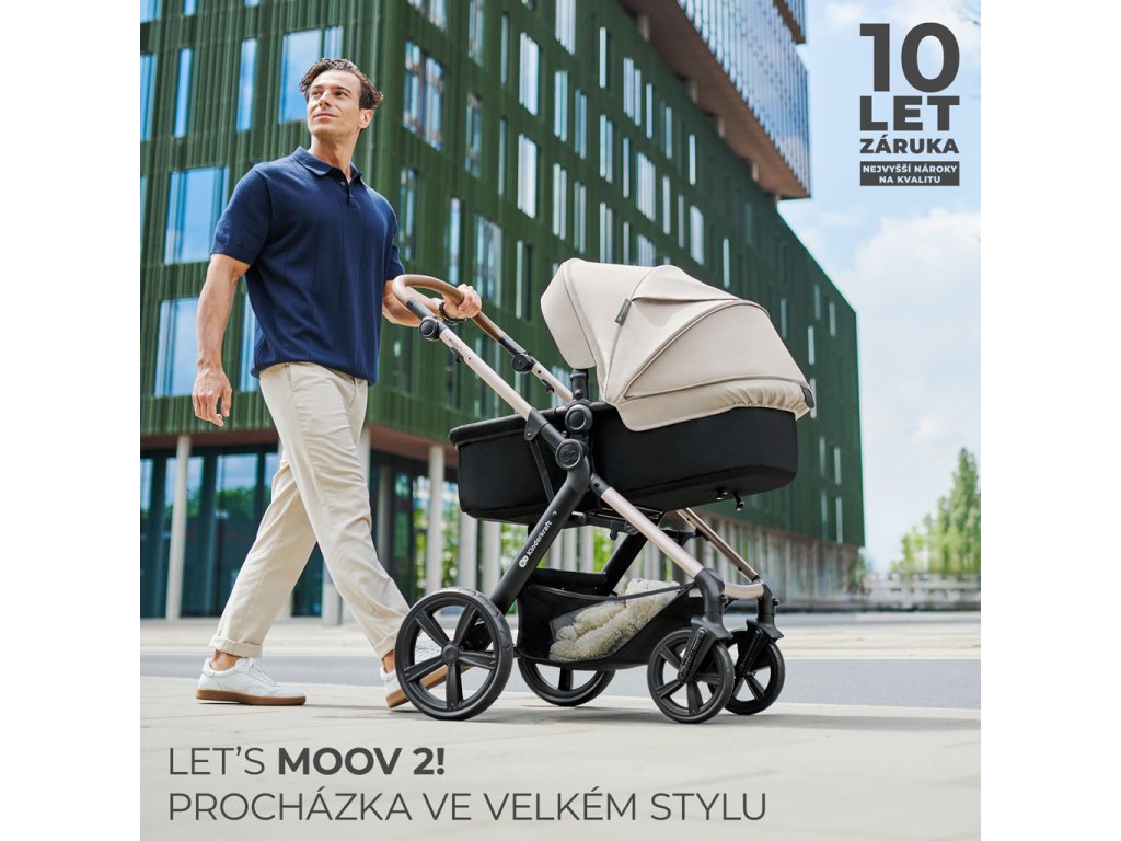 MOOV 2 je kočík 3 v 1, ktorý je ľahké ovládať. Má veľké, odpružené a neprepichovateľné kolesá, ktoré sú ľahké a odolné proti opotrebovaniu. Sú ideálne na prechádzky po meste a vďaka odpruženiu bude vaše dieťa počas celej prechádzky v pohodlí.