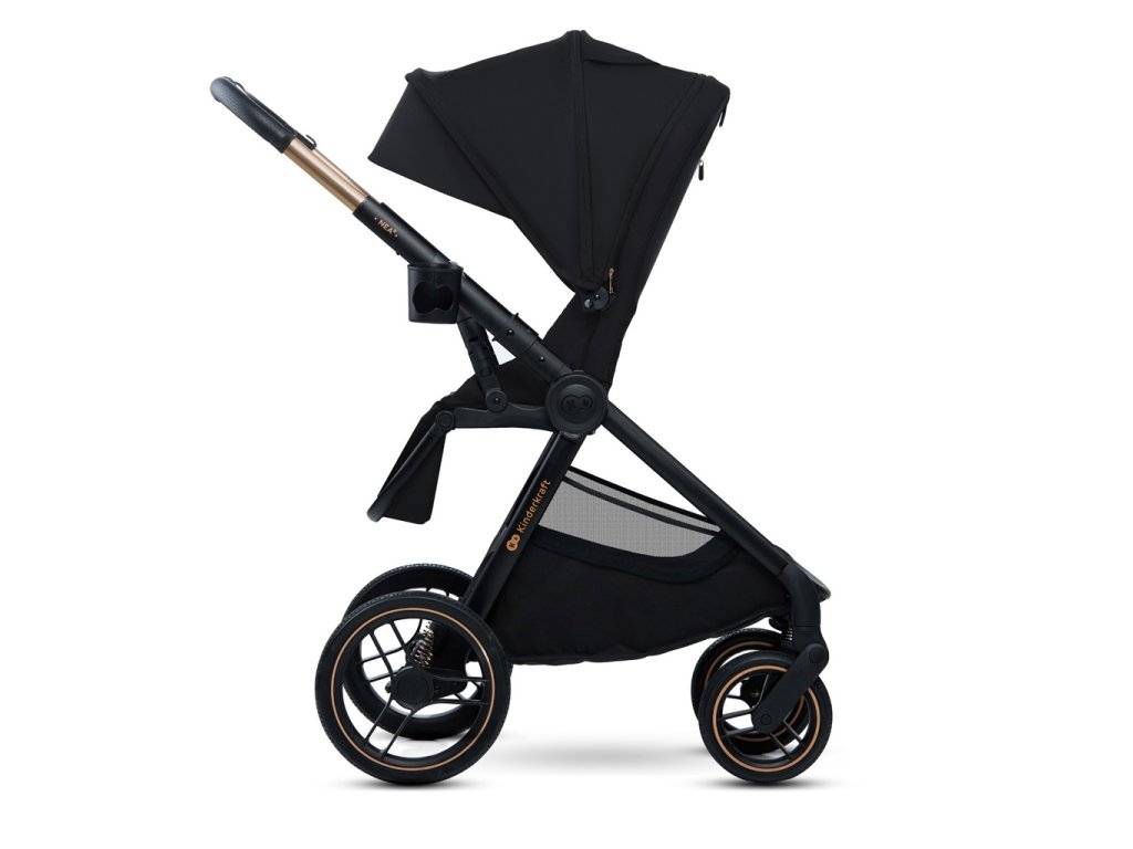 - Veľké kolesá s tlmičmi nárazov umožňujú jednoduché zdvihnutie kočíka a nevyžadujú pumpovanie.