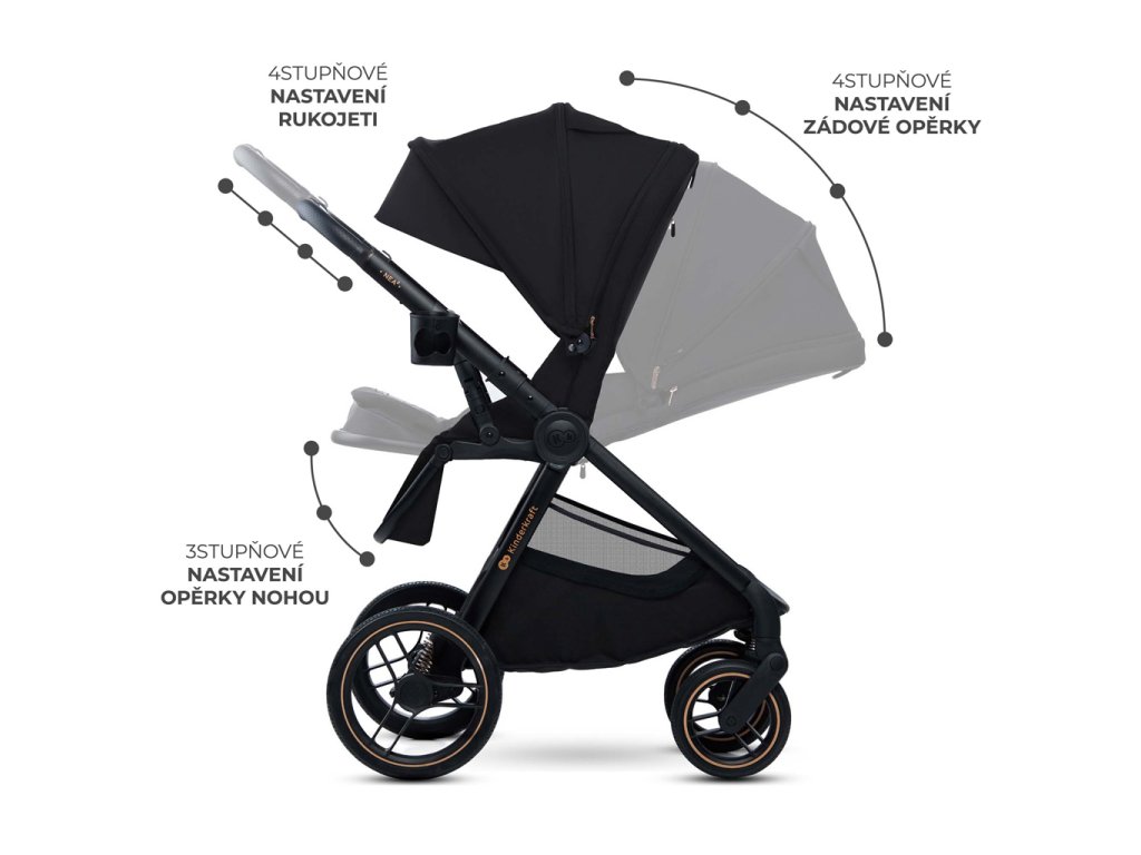 KINDERKRAFT Kočík kombinovaný Nea 2 2v1 Midnigth Black + Fusak 3v1 Jibot Horizontal Ink Black