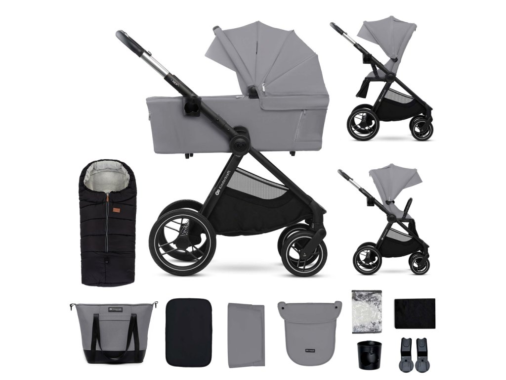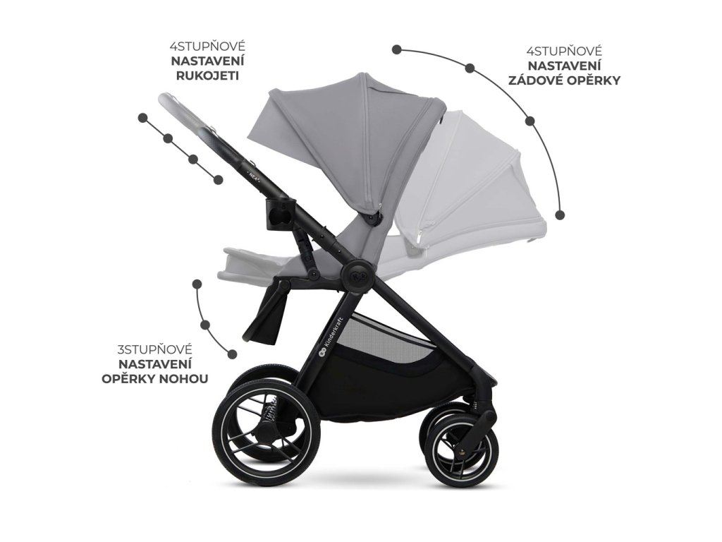 KINDERKRAFT Kočík kombinovaný Nea 2 2v1 Platinum Grey + Fusak 3v1 Jibot Horizontal Ink Black