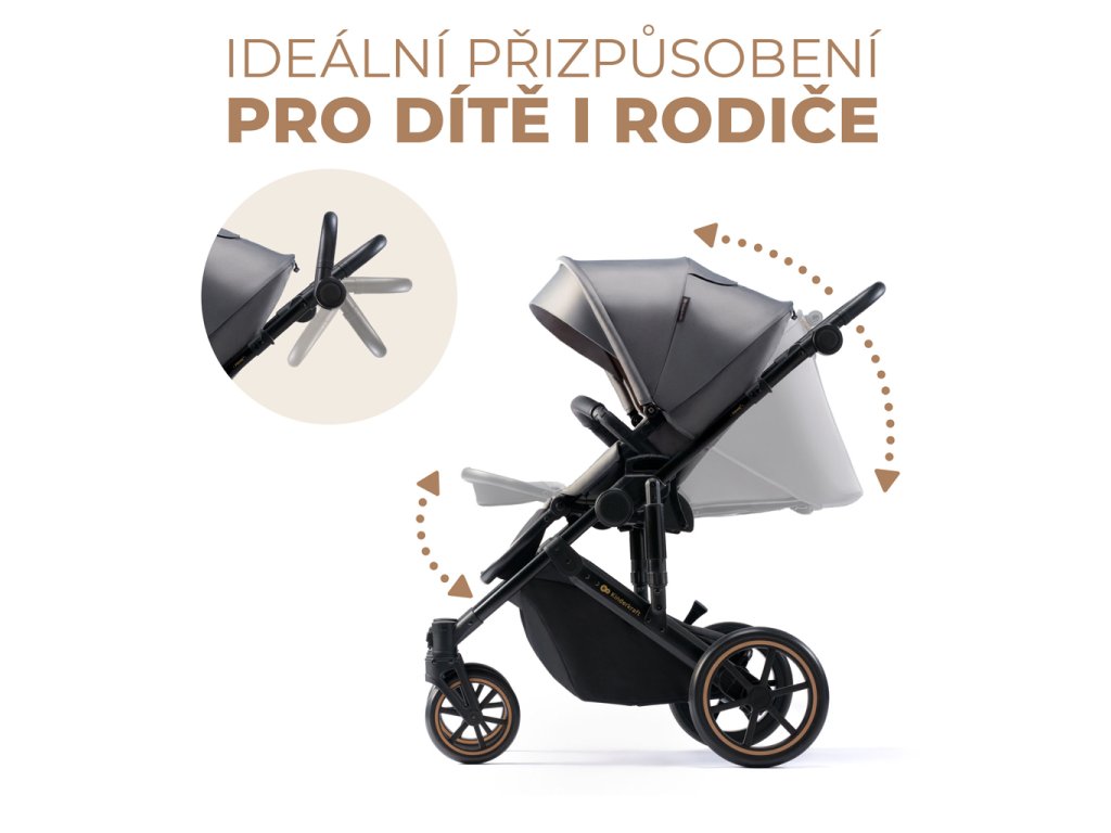 KINDERKRAFT SELECT Kočík kombinovaný 3v1 Prime 2 Shadow Grey, Premium + Fusak 3v1 Jibot Ink Black