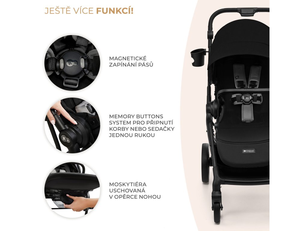 KINDERKRAFT SELECT Kočík kombinovaný Yoxi 3v1 Pure Black + Fusak 3v1 Jibot Horizontal Ink Black
