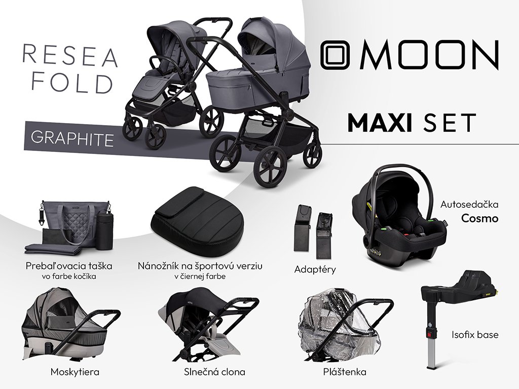 Moon kombinovaný kočík ReSea FOLD maxi set - GRAPHITE