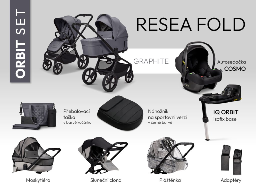Moon kombinovaný kočík ReSea FOLD ORBIT set - GRAPHITE