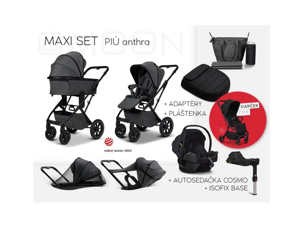 Moon PIÚ Maxi set Black matt - ANTRA + kočík Zoe zdarma