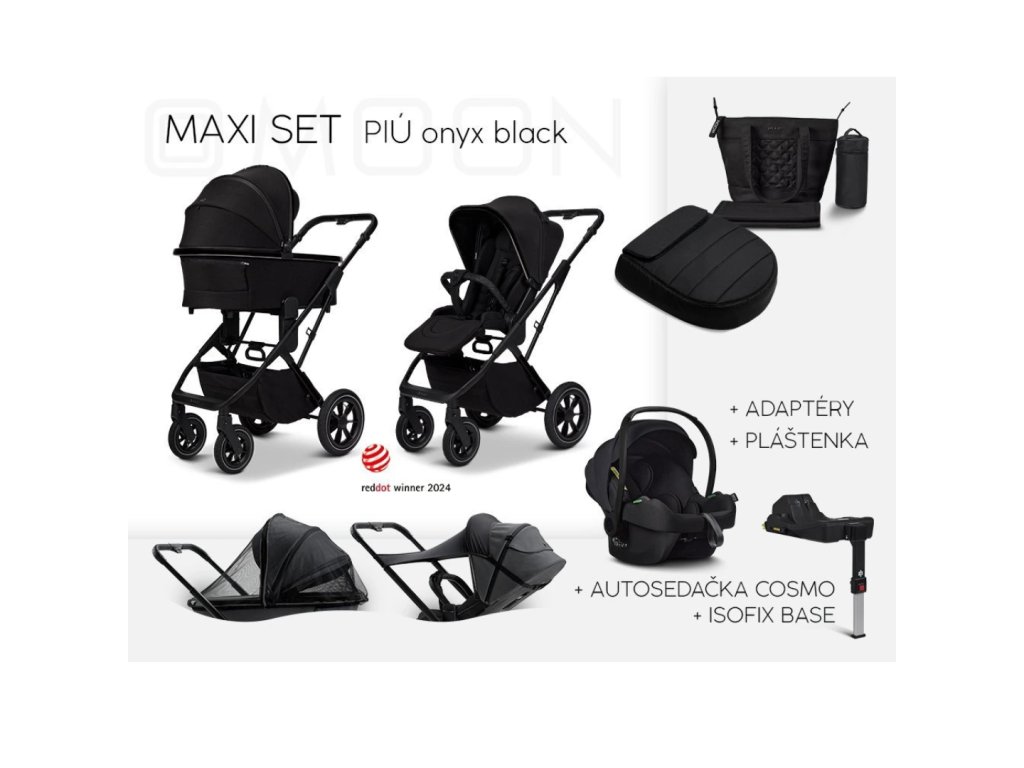 Moon kočík PIÚ Maxi set Black chrome - ONYX BLACK