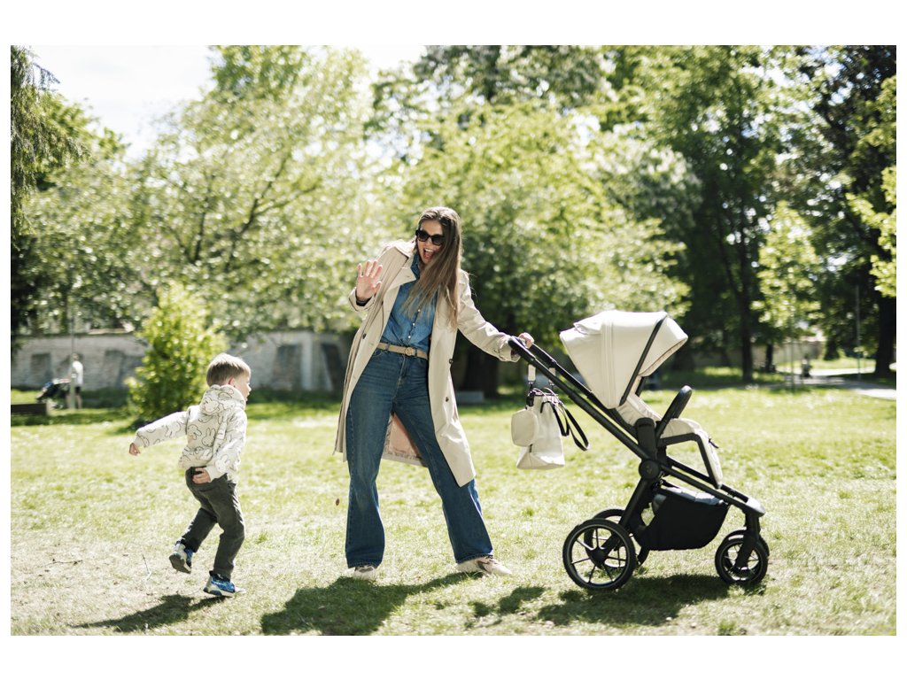 Kočík umožňuje otočné športové sedenie, ktoré môžete nasmerovať v smere aj proti smeru jazdy. Veľkou výhodou je výškovo nastaviteľné sedenie aj strieška, každé v troch úrovniach. Prispôsobí sa tak nielen výške rodiča, ale aj rastu dieťaťa.
