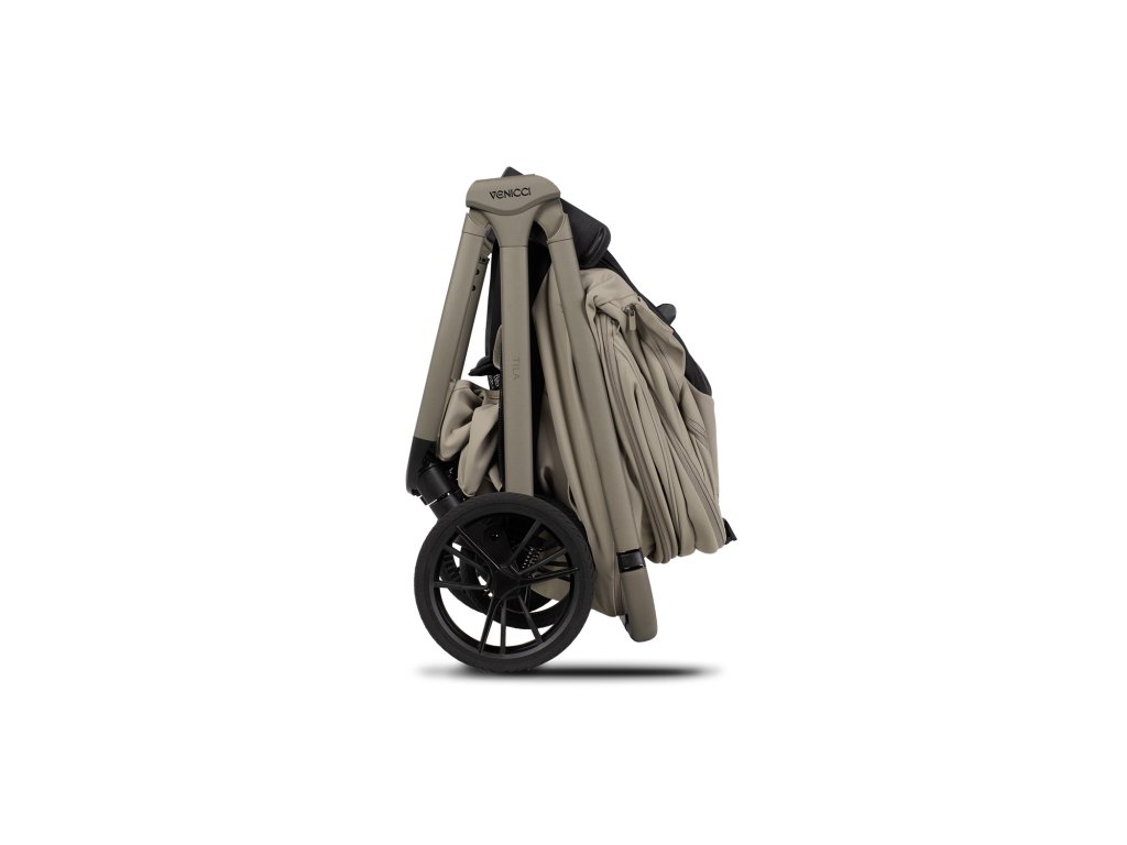 Jednou z hlavných výhod kočíka Venicci Tila je systém Up2Go, ktorý umožňuje zložiť korbu spolu s rámom jedným pohybom. Vďaka tomu je preprava a skladovanie kočíka rýchle a bez námahy – ideálne riešenie pre mestských rodičov.