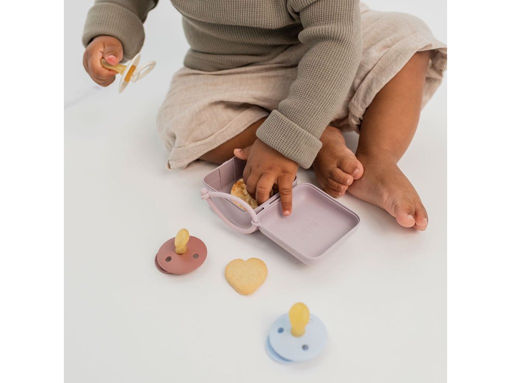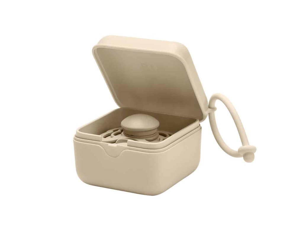BIBS je obľúbená dánska značka s tradíciou výroby ikonických cumlíkov od roku 1978. Okrem cumlíkov BIBS ponúka aj pestrý prémiový sortiment pre najmenšie deti v minimalistickom škandinávskom dizajne a širokej farebnej palete. Všetky BIBS produkty sú garanciou najvyššej kvality detského sortimentu. Krabička, box, púzdro, obal, ... jednoducho pomocník, ktorý ochráni cumlík pred znečistením, keď ho práve nepotrebujete. No nie len to... BIBS krabička na cumlíky je zároveň aj sterilizačným boxom na sterilizáciu cumlíkov v mikrovlnke alebo šikovnou krabičkou na akékoľvek drobnosti, ktoré chcete mať po ruke kdekoľvek ste. Keďže je vyrobená z bezpečného potravinárskeho materiálu, je vhodná aj ako dóza na drobný snack. Vďaka šikovnému silikónovému pútku si BIBS krabičku na cumlíky pripevníte na tašku, kočík, ku postieľke, či autosedačke. Bez použitia vložky sa zmestia až 3 cumlíky. S použitím vložky sa zmestí 1 cumlík a klip na cumlík. Z jednej strany je vložka určená na cumlíky okrúhlych tvarov ako BIBS Colour, DeLux alebo Boheme a po otočení je vhodná na cumlíky motýlikového tvaru ako BIBS Supreme alebo Couture. Možno použiť na sterilizáciu cumlíka v mikrovlnnej rúre. Vyrobené zo 100% bezpečného potravinárskeho materiálu, preto je krabička vhodná aj na uskladnenie drobného občerstvenia. Navrhnuté a vyrobené v Dánsku. Cumlík na obrázku nie je súčasťou balenia. Certifikáty : V súlade s európskymi normami EN 15284, EN 1186-01, EN 1186-03, EN 1186-14. Návod na sterilizáciu cumlíkov v BIBS krabičke: Pridajte dve lyžice vody do krabičky na cumlík a vložte cumlík. Krabičku vložte do mikrovlnky na cca. 60 sekúnd pri výkone max. 800 W. Teplota by nemala prekročiť 100°C. Dbajte na pokyny výrobcu mikrovlnnej rúry. Pred vybratím cumlíka nechajte krabičku 2 minúty vychladnúť. Odporúčame sterilizovať v mikrovlnnej rúre iba silikónové cumlíky, nie cumlíky z prírodného kaučuku. Používajte opatrne! Počas sterilizácie musí byť produkt mimo dosahu detí. Rozmer : cca 7,5 x 7,2 x 5 cm.