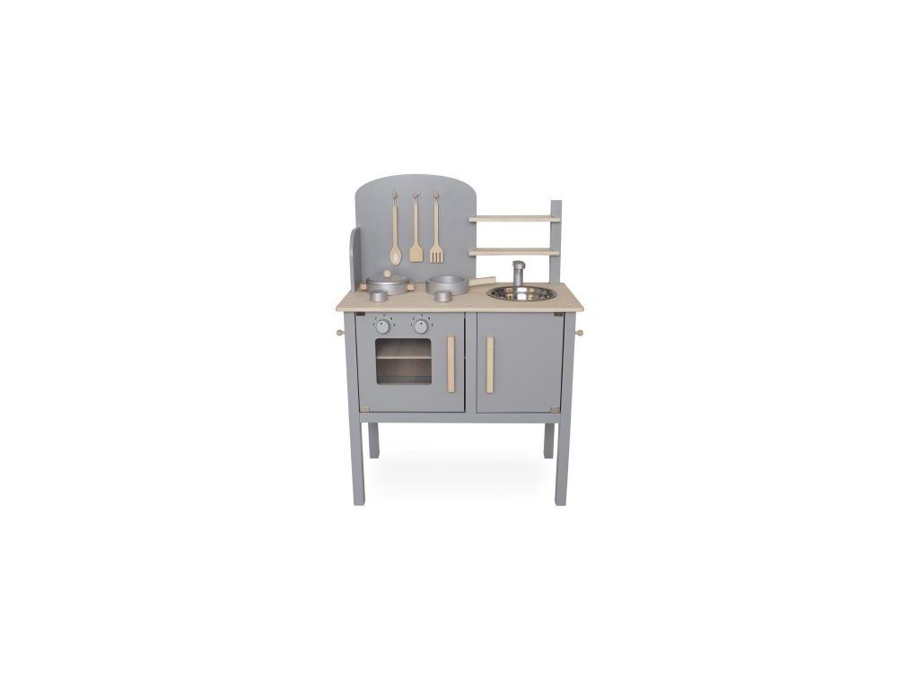 Skvělá dětská kuchyňka pro všechny malé kuchaře a milovníky vaření. Obsahuje spoustu hravých detailů: dřez, sporák, troubu, stejně jako hrnec, pánev a tři kuchyňské nástroje. Zadní část sporáku má tabuli, na kterou lze napsat, co je k večeři. Kuchyňka má skříňky a dvě police pro uložení všech kuchyňských doplňků.