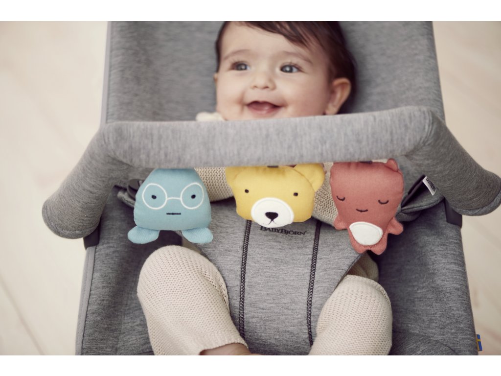 Krásná měkká zvířátka, která se houpou a chrastí, když se houpe lehátko. Hračka je vyrobena z měkké látky, která se dá lehce sundat a vyprat na 30 st. Hračka podněcuje dítě ke hře a odpočinek v lehátku díky ní získá nový, zábavnější rozměr.