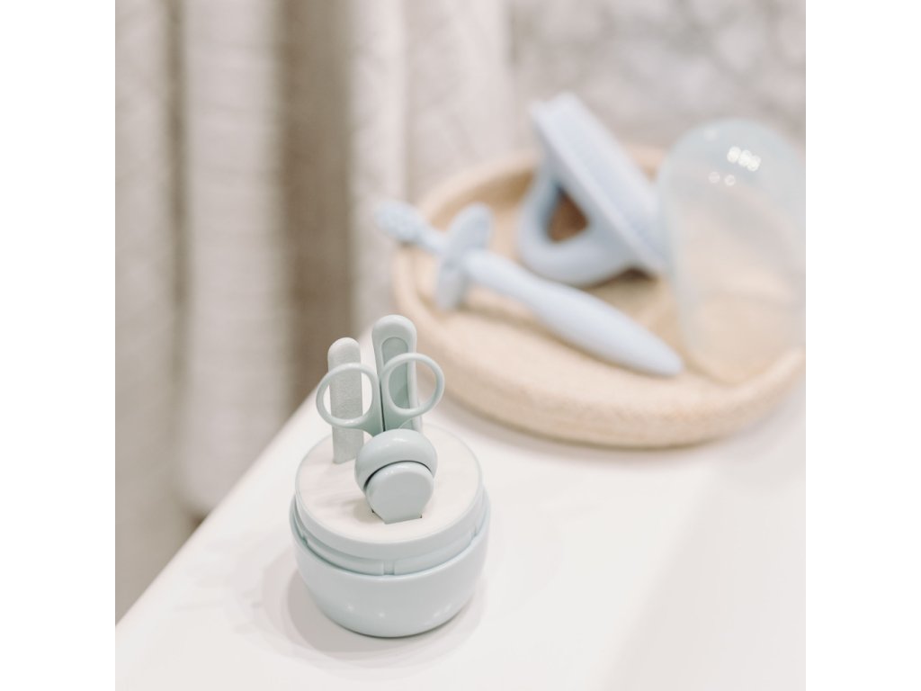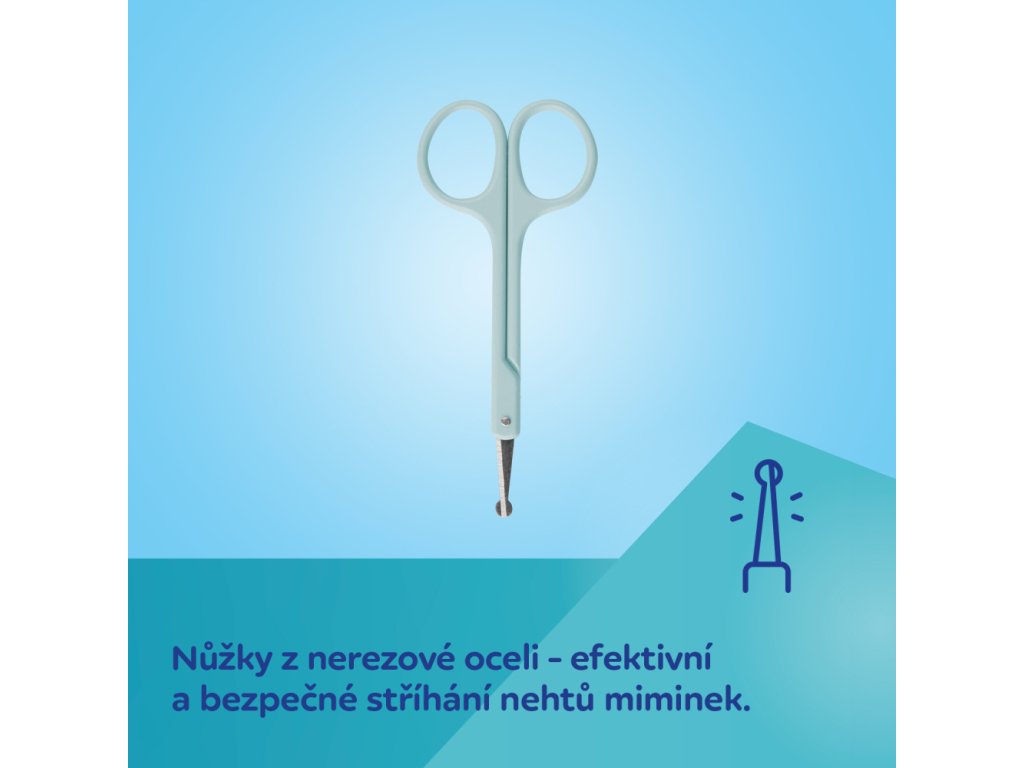 Súprava obsahuje nožnice, šikovné kliešte na nechty, jemný pilník na nechty a pinzetu. Dostupné v dvoch farebných prevedeniach. Aby sa minimalizovalo riziko neočakávaného pohybu dieťaťa, odporúča sa zastrihnúť nechty, keď dieťa spí. Súprava nie je vhodná do umývačky riadu. Nevyvárajte, pre dezinfekciu použite vhodný dezinfekčný prostriedok a opláchnite vodou.