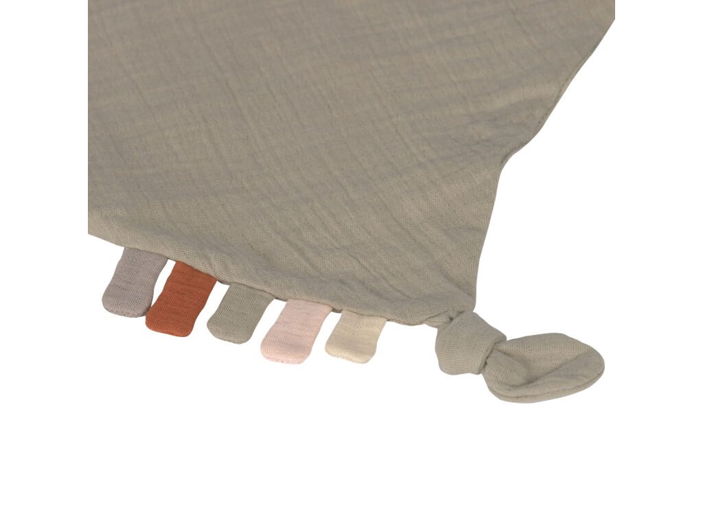 Baby Comforter z kolekce Little Universe je jedním z dalších výrobků značky Lässig, vyznačující se vysokou kvalitou materiálů, jejich zpracováním a svojí funkčností. Měkký mušelínový hajáček slouží dítěti jako plyšová hračka, společník před spaním a náhradní dudlík. Ideální pro děti, které se rády choulí. Je vyrobený z organické bavlny a nese označení GOTS, které je uznávané jako přední zpracovatelský standard pro textil vyrobený z ekologických vláken na celém světě. Díky své struktuře, barvě a tvarům motivuje děti k rozvoji motoriky. Malý roztomilý nebeský prvek, uzlíky v rozích látky i další barevné designové detaily motivují dítě k úchopům, hlazení a cucání. Jsou stimulovány zrak a hmat dítěte, které se zároveň učí věc pozorovat. Vhodné pro děti od 2 měsíců. dětský utěšitel certifikovaný materiál jemný k dětské pokožce vysoce savý vhodný k mazlení, cucání a rozvoji smyslů nepíská ani nešustí lze prát v pračce na jemný program při teplotě 30 °C materiál: 100% bio bavlna - vnější materiál i výplň rozměry: délka 48 cm, šířka 3,5 cm, výška 44 cm hmotnost: 0,044 kg Upozornění pro spotřebitele: K výrobku nepřipevňujte šňůry, stuhy nebo podobné předměty. Nesvazujte opačné konce. Nebezpečí uškrcení!