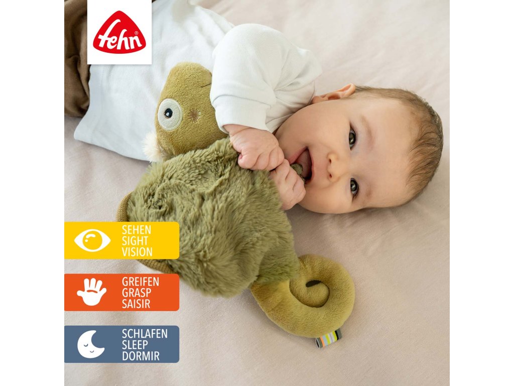 Očarujúci maznáčik chameleón z kolekcie Lazy, Crazy & Pink je uspávanka, plyšový kamarát a maznacia dečka v jednom. Ako hebká hračka je verným spoločníkom doma aj na cestách. Jeho mäkký, maznavý tvar pomáha deťom ľahšie zaspať. Cez deň láka k uchopeniu, skúmaniu a maznaniu, večer poskytuje pocit bezpečia. Roztomilý chameleón sa tak rýchlo stane súčasťou každého dobrodružstva.