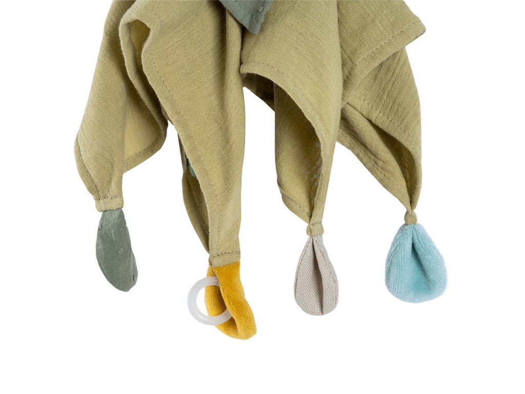 Veľa úchopových prvkov, mäkké materiály a hlavička medvedíka sú prvky, ktoré stimulujú zmysly bábätka a tým sa dieťatku rozvíjajú hmatové zmysly. Praktický krúžok na cumlík zaistí, že sa cumlík nestratí pri žiadnom dobrodružstve.